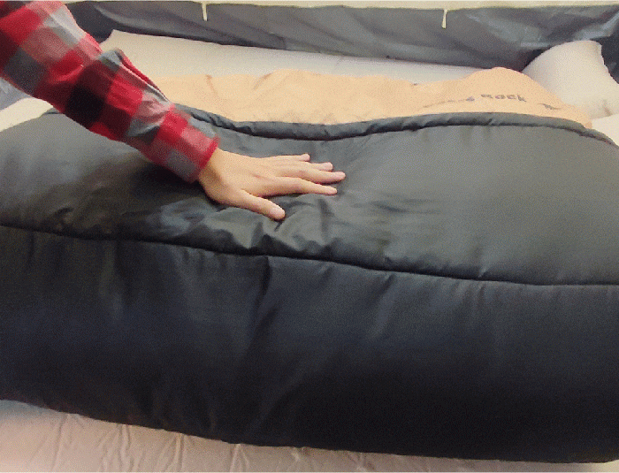 Bears Rockの封筒型寝袋の中では一番の温かさで、寝袋と名のつく布団と思っていただいてもよいほどふわふわで寝心地最高に仕上がっています。横幅も90cmで、大きめに作られていますので、寝返りも楽にでき、ゆったりと眠っていただけます。毛布を入れることも出来ます。